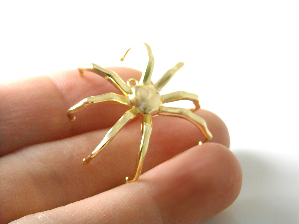 3D Spider Charm crafted from high-quality brass and finished with 18 karat gold, realistic spider design. Lead, Cadmium and Nickel free.