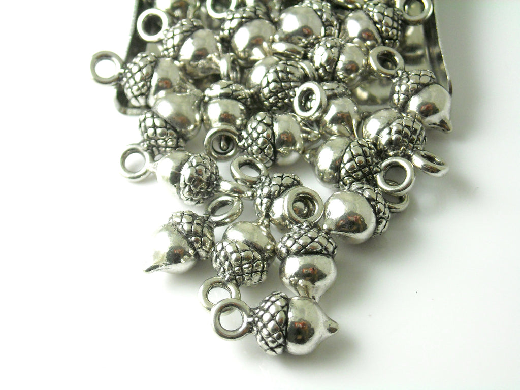 Petite Acorn Charms featuring a seamless antique silver finish over a fine-textured brass casting.